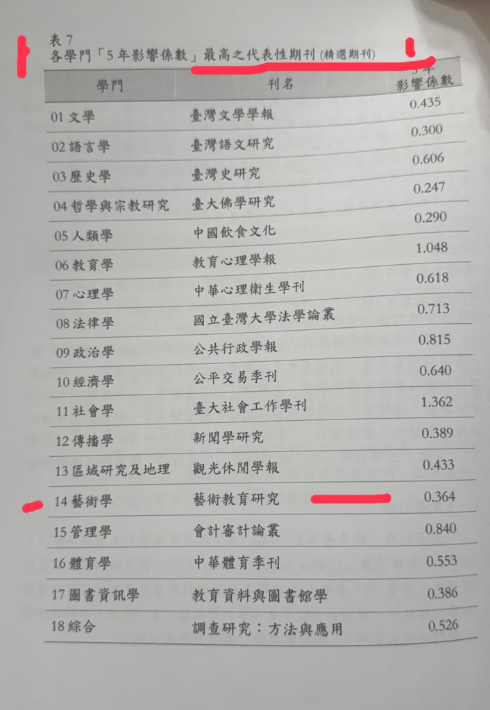 3.「藝術學學門(精選期刊)五年影響係數最高之代表性期刊」