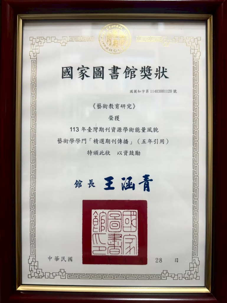 「藝術學學門精選期刊傳播—五年引用」獎